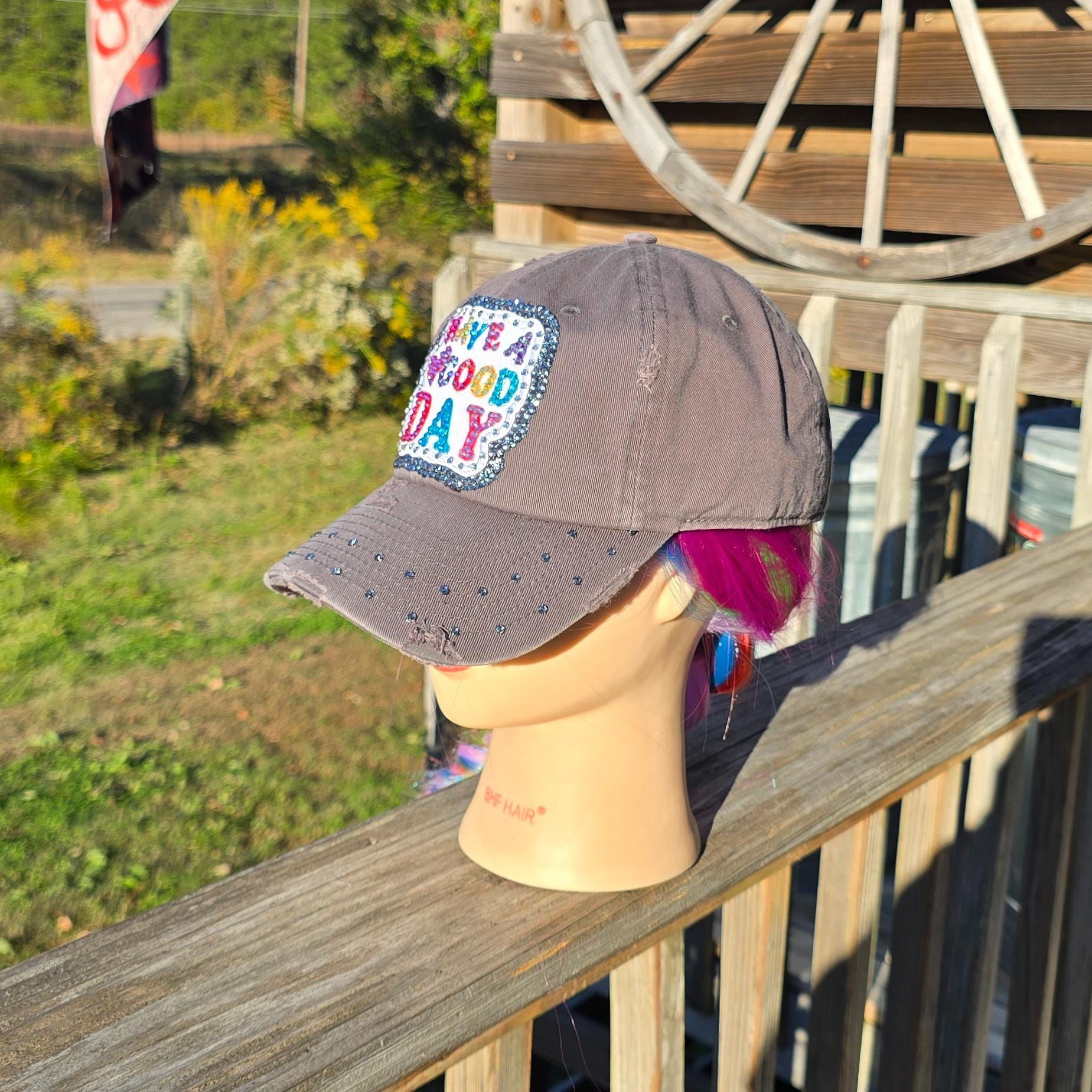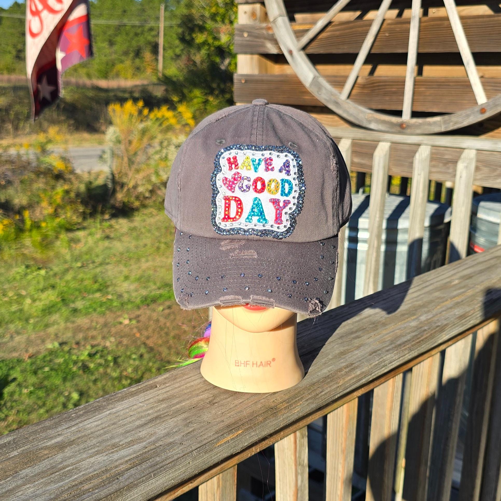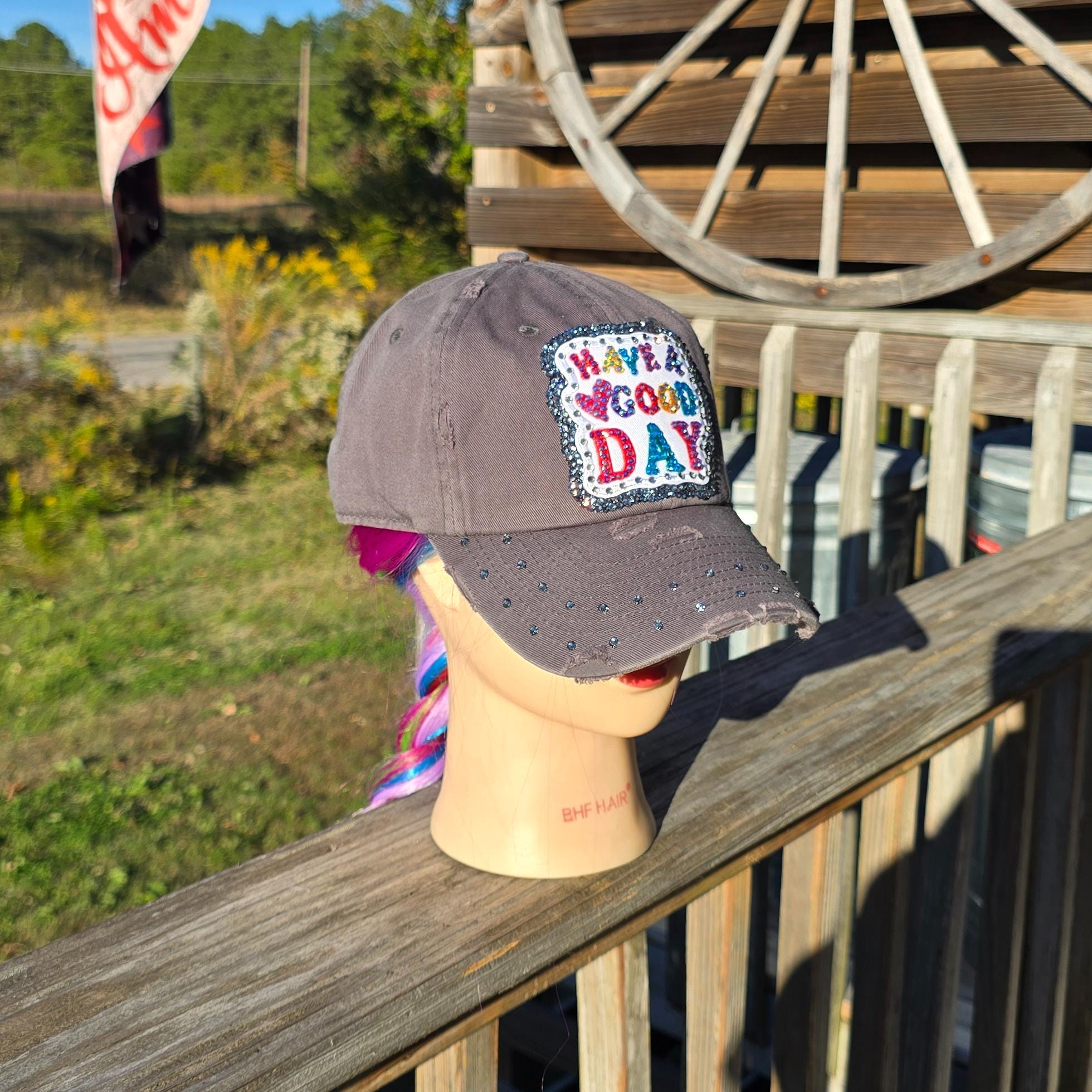 Ladies Charcoal Gray Have A Good Day BLING Hat