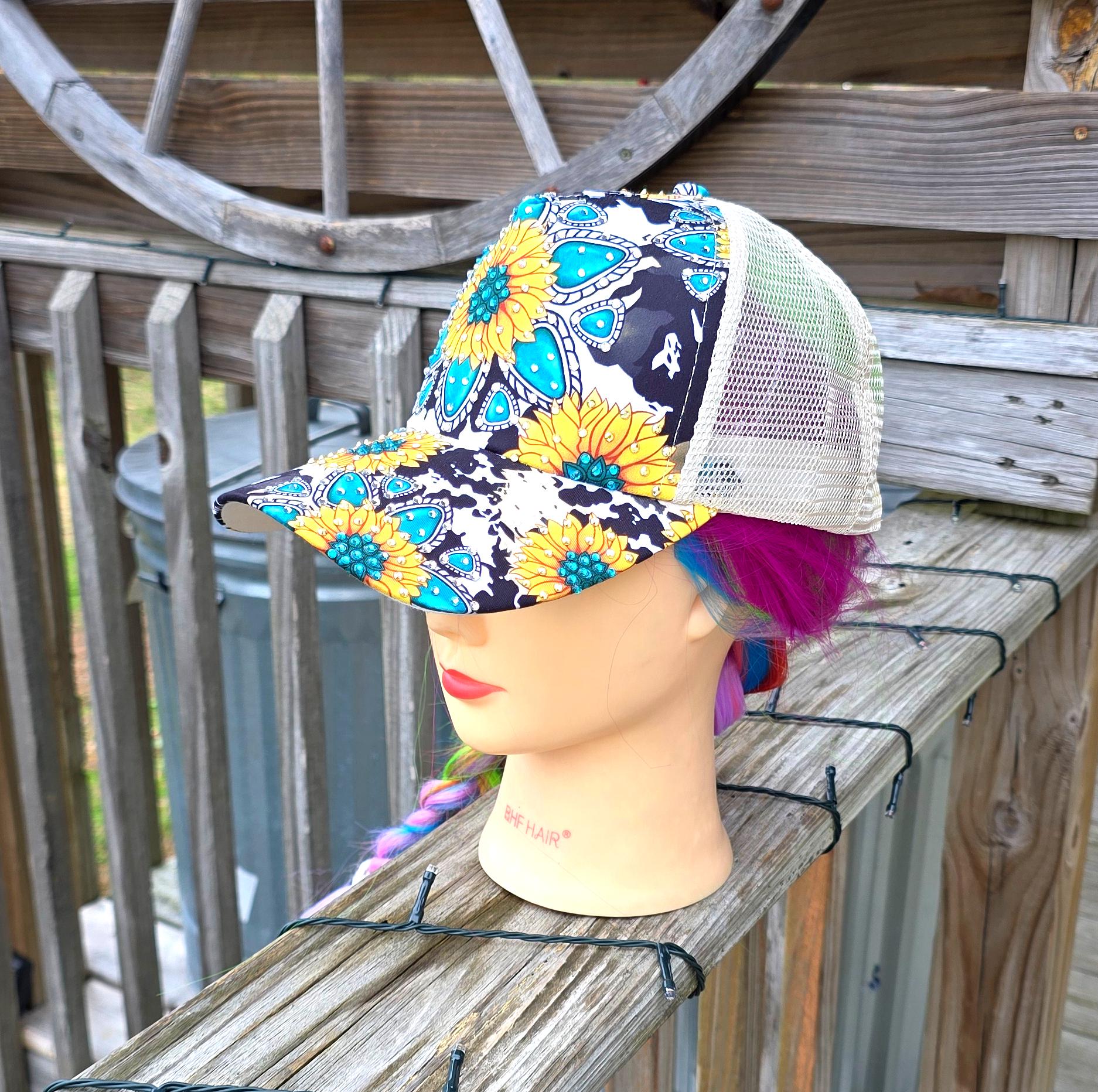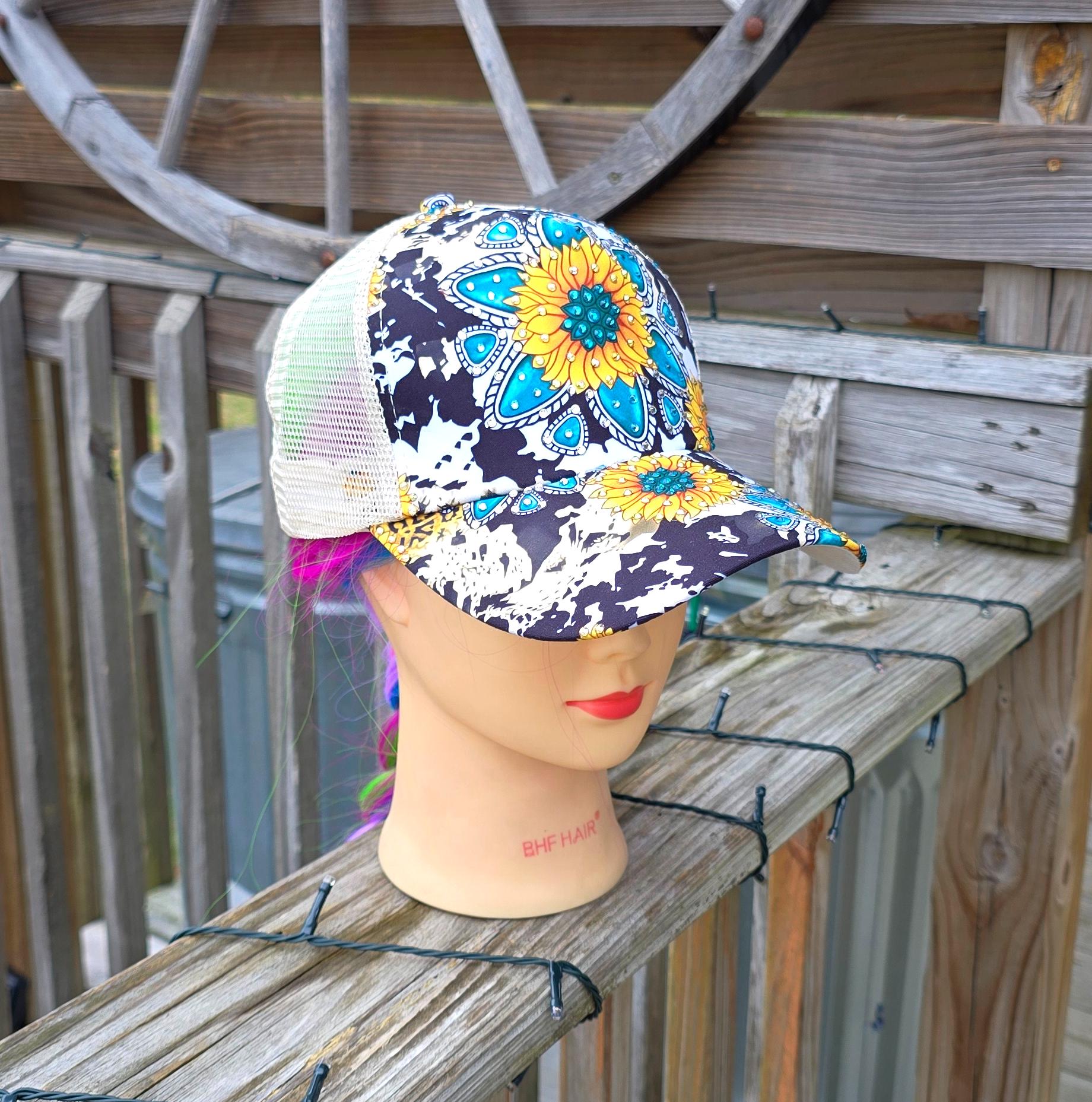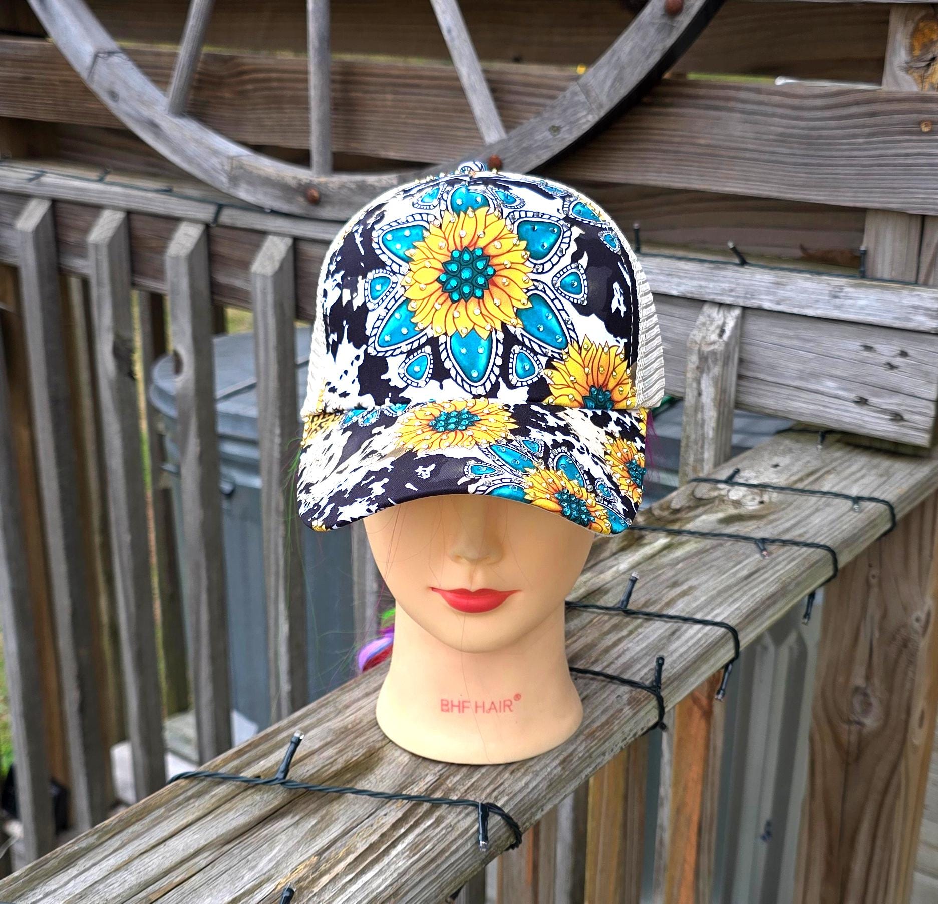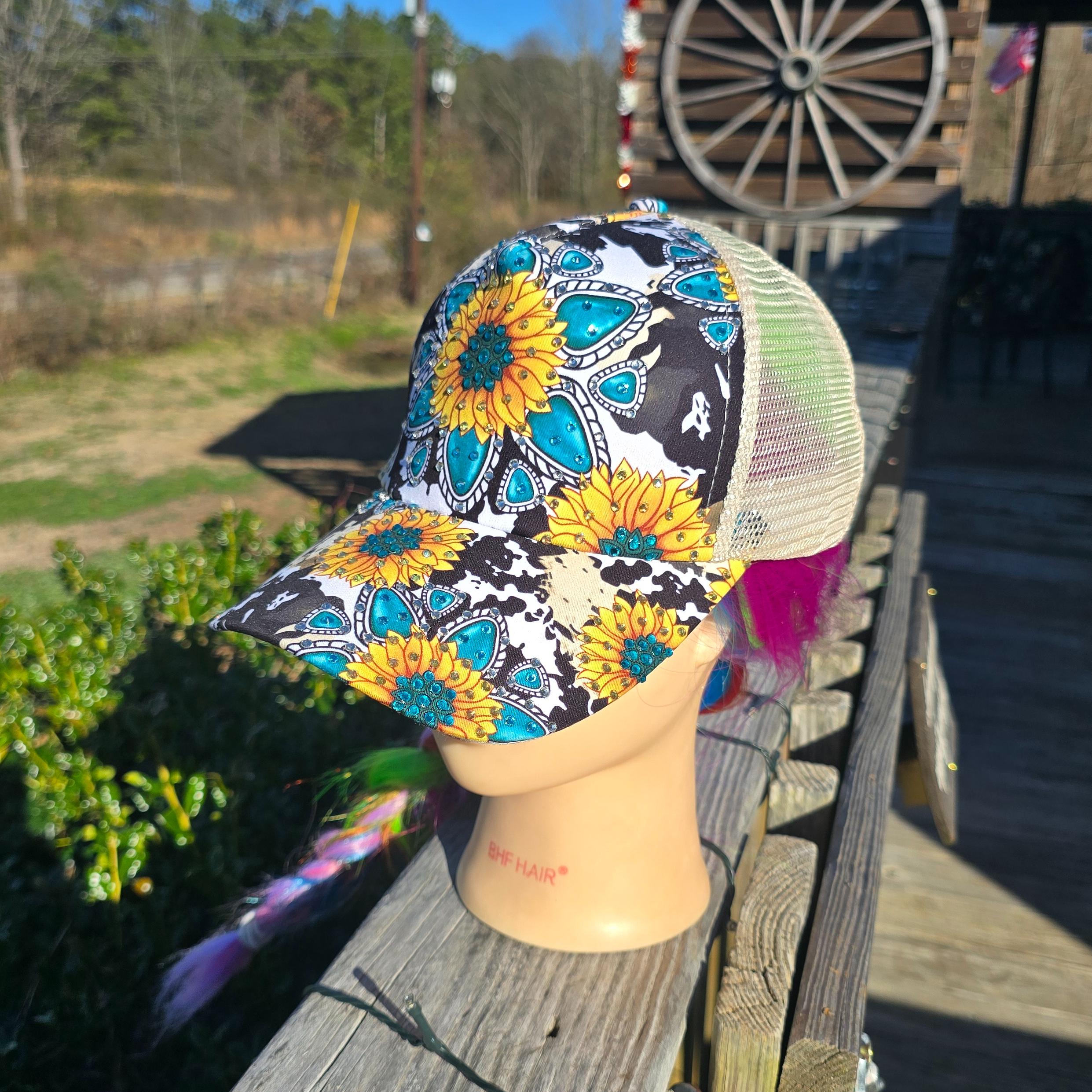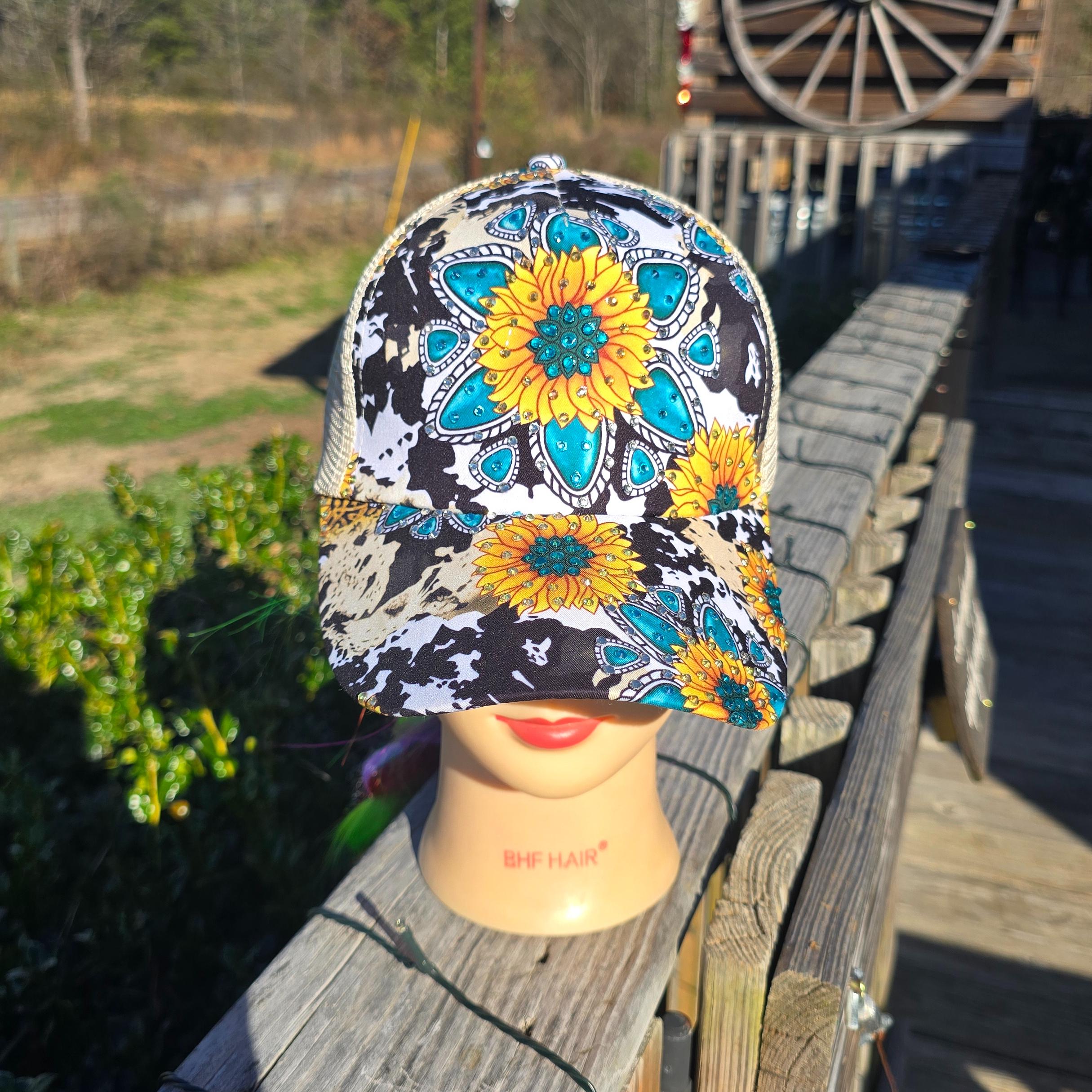 Ladies Cow Print Jeweked with Sunflowers BLING Hat