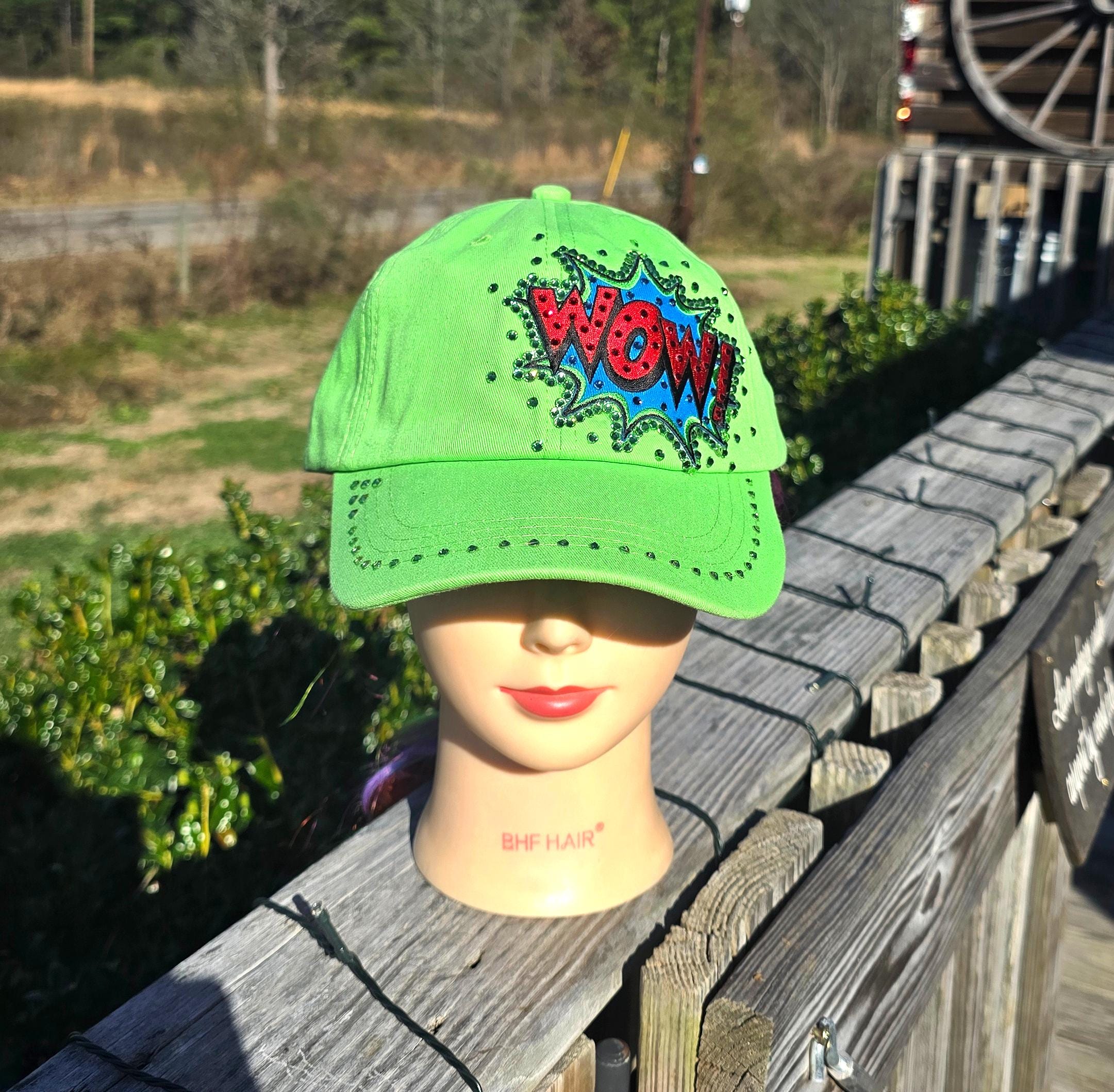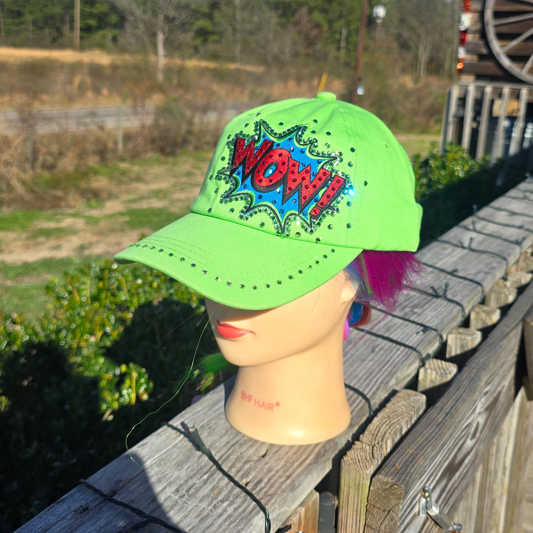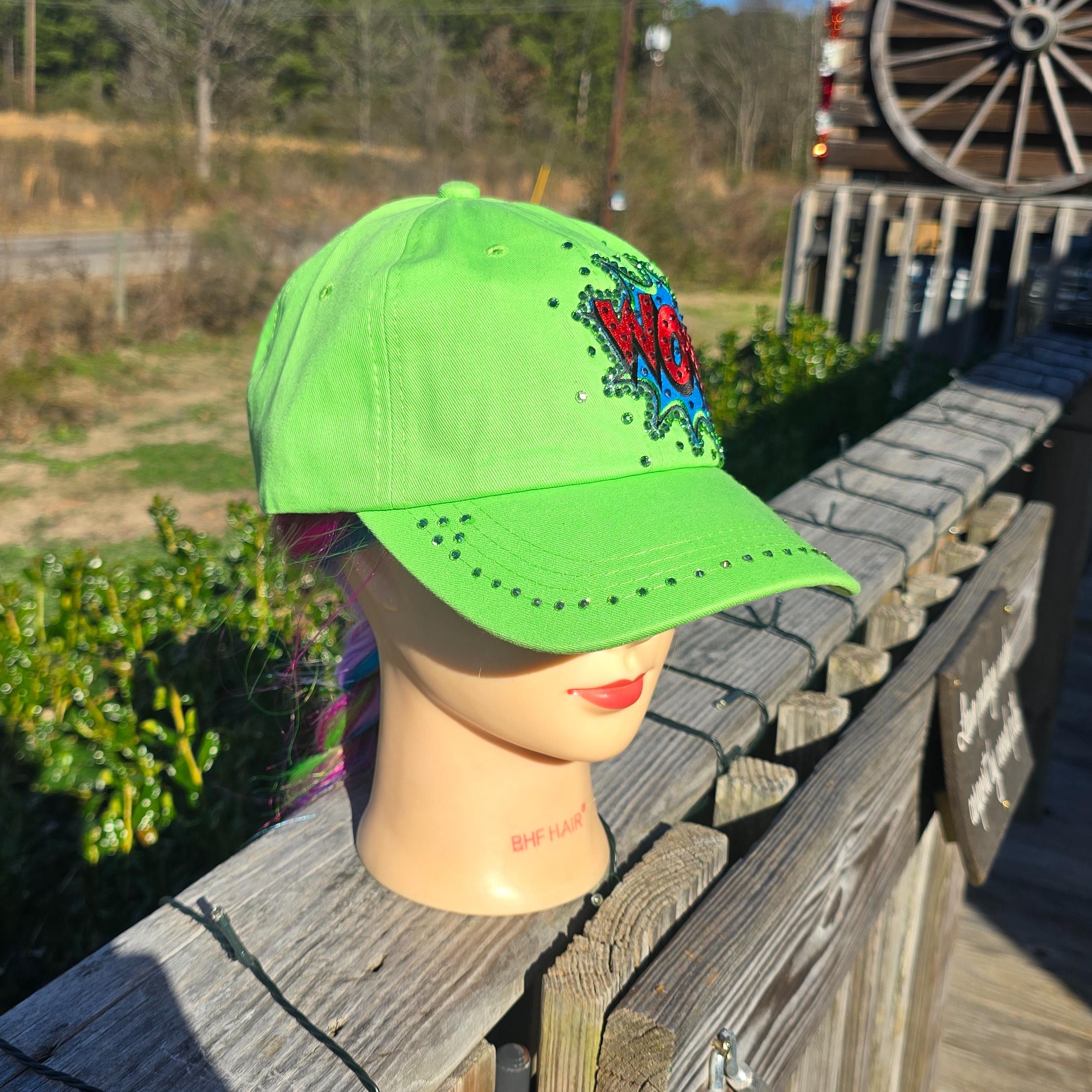Ladies NEW Bright Green WOW BLING Cap